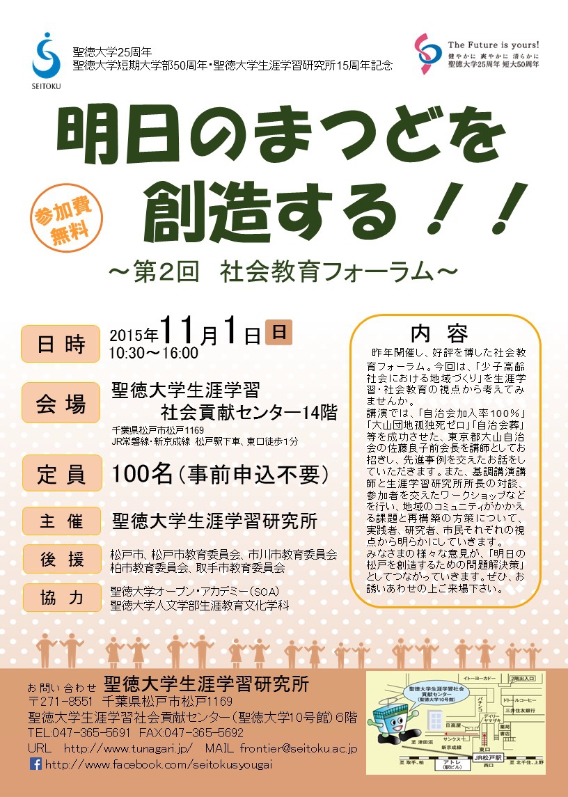 会 場:聖徳大学生涯学習社会貢献センター 14階(JR常磐線・新京成線 松戸駅下車、東口徒歩1分)