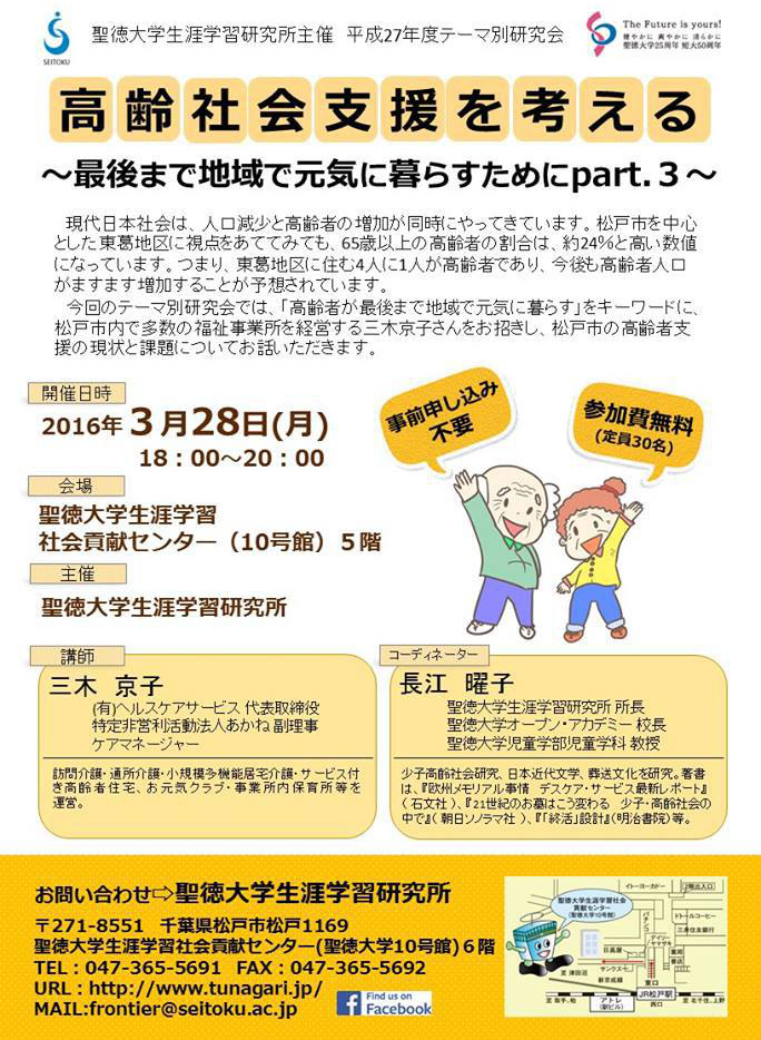 2016/02/12 「高齢社会支援を考える~最後まで地域で元気に暮らすためにpart.3~」開催のお知らせ