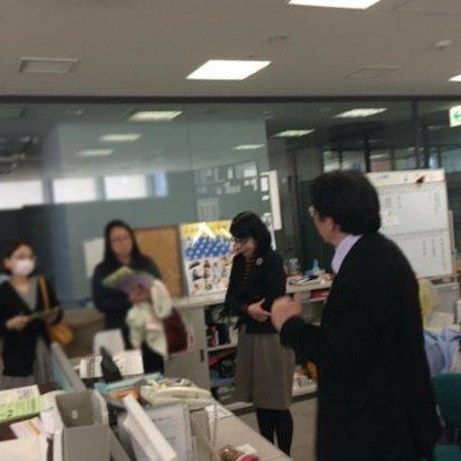 先日、ドイツ(ベルリン)からのお客様が10名、生涯学習研究所に視察にいらっしゃいました。この視察は、本学教職研究科の椨先生のネットワークで実現したものです。当研究所といたしましては、長江所長、有川、谷の3名でお出迎えをいたしました。いらっしゃった方々は、ドイツで保育や福祉の領域の専門職を養成されている学校の方々で、本学の生涯学習についての取り組みを、熱心に聞かれていきました。旅程中は、文部科学省や、本学の授業の視察など、かなりハードなスケジュールだったと伺いましたが、旅の疲れを感じさせないほど、沢山の質問をしていただきました。今後も、このような機会がございましたら、積極的に視察を受け入れていこうと考えています。ドイツからお越し下さり、ありがとうございました。