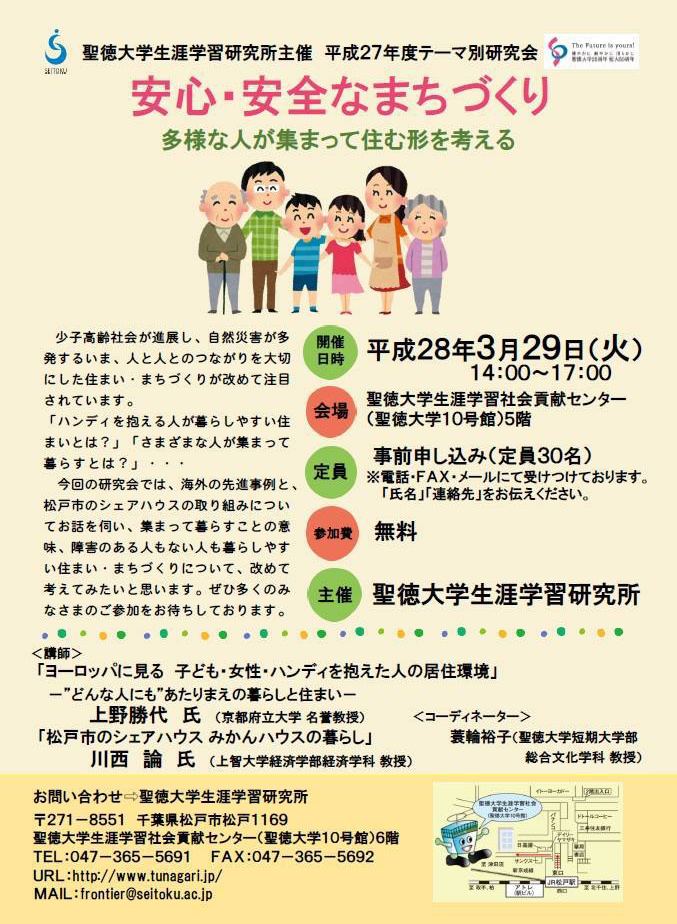 2016/03/08 「安心・安全なまちづくり-多様な人が集まって住む形を考える-」開催のお知らせ