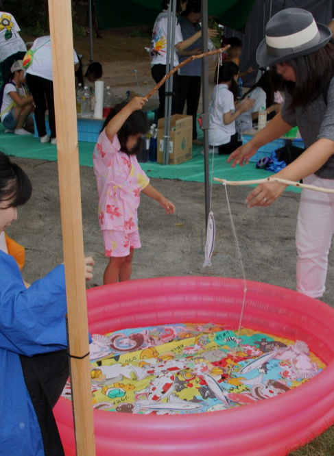 生涯学習研究所は、地域連携活動の一環として、8月27日(土)に行われた「ラストサマーフェス&盆踊り」(主催:松戸まちづくり会議)に、お子さん向けの魚釣りゲームを出店し、168名のお子さんが、ゲームを楽しみました。