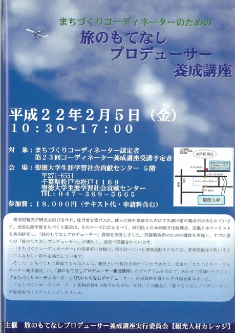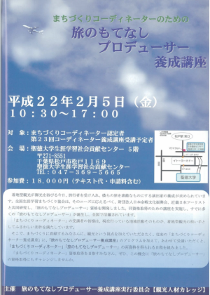 TOP > 研究・実践事業 > 2009年(平成21年) > 旅のもてなしプロデューサー特別講座2月