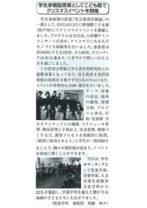 TOP > 研究・実践事業 > 2014年(平成26年) > 学生とNPOスタッフが育む地域連携イベント「みんなで楽しいクリスマス★」